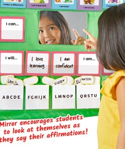 Setul contine 41 de cartonase cu imagini si text, inscriptionate in limba ENGLEZA, din care 24 de buc. cu doua fete pentru confirmare, 5 buc. pentru gruparea numelor si 12 buc. cu doua fete, reinscriptionabile.La acestea se adauga o oglinda.